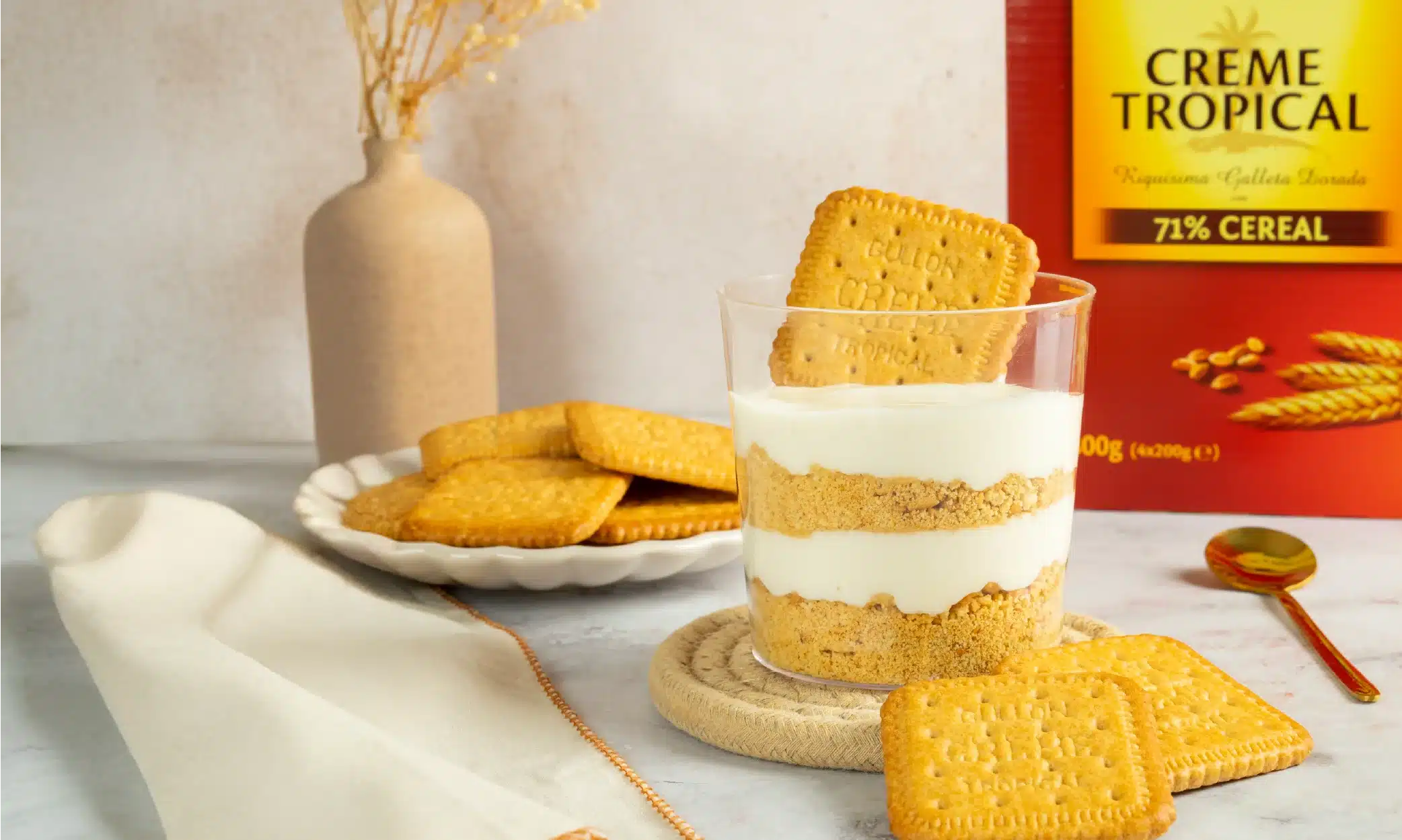 Los batidos son la alternativa ideal cuando literalmente no hay tiempo para sentarse a desayunar. Con solo un plátano maduro, un vaso de leche (o bebida vegetal) y, si se desea, una cucharada de cacao puro sin azúcar, se obtiene una bebida energética natural, y deliciosa. Prepararlo no lleva más de dos minutos en la batidora, y se puede llevar en un vaso portátil para tomar de camino al trabajo o al colegio. Si además le añades unas galletas Gullón Creme tropical, ¡la combinación es aún más deliciosa!